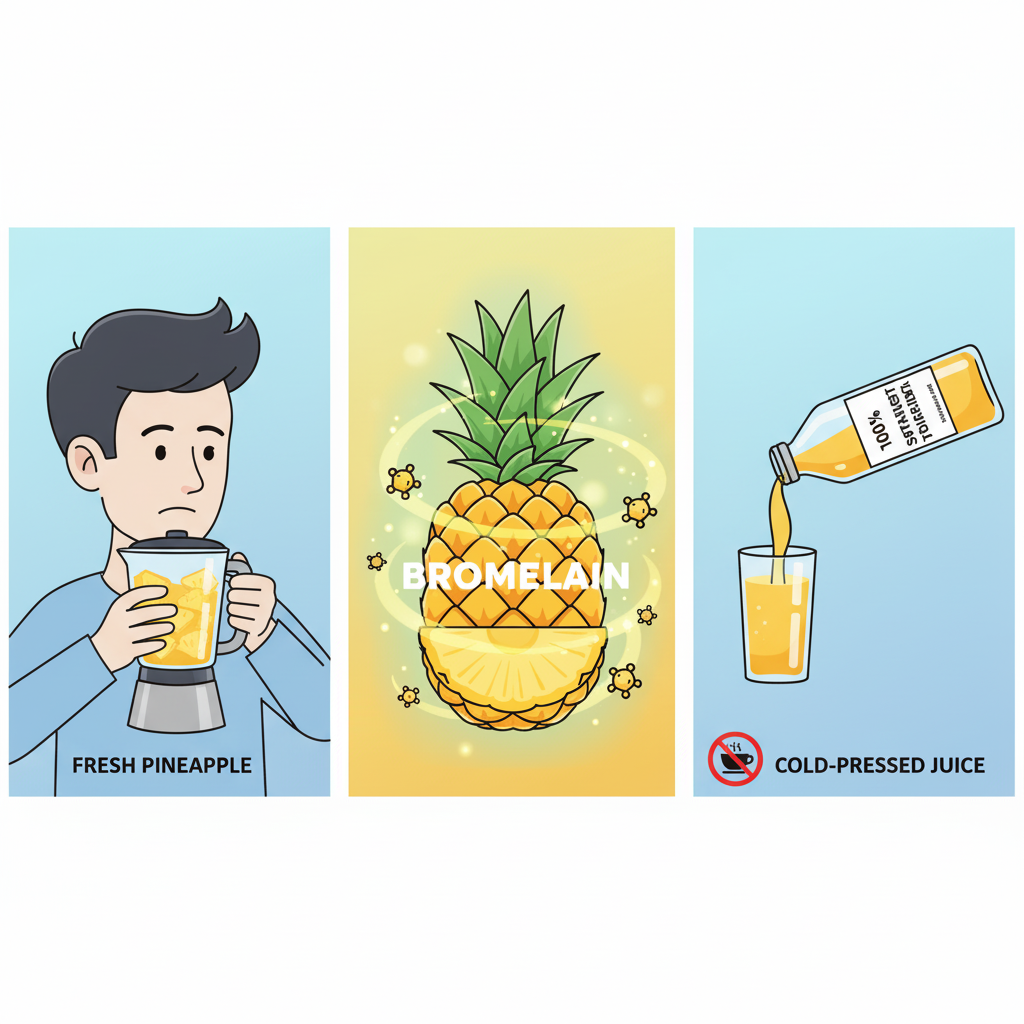パイナップルが喉のケアに役立つ最大の理由は、豊富に含まれる**「ブロメライン」**という酵素にあります。